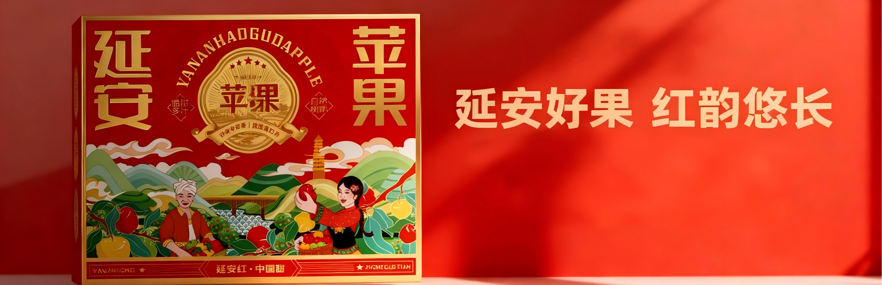 通过“红金配色(喜庆高端)+ 地域符号(延安特色)+ 场景插画(生产记忆)+ 情感口号(中国甜)”的组合,将“延安苹果”从“普通水果”升级为“有文化、有温度、有品质的礼品”,既强化了“延安产”的地域差异化优势,又满足了消费者“送好礼、送正宗、送情感”的需求。最终实现“视觉吸引—文化共鸣—品质信任”的传播链路,助力“延安苹果”在礼品市场中形成独特的品牌辨识度。